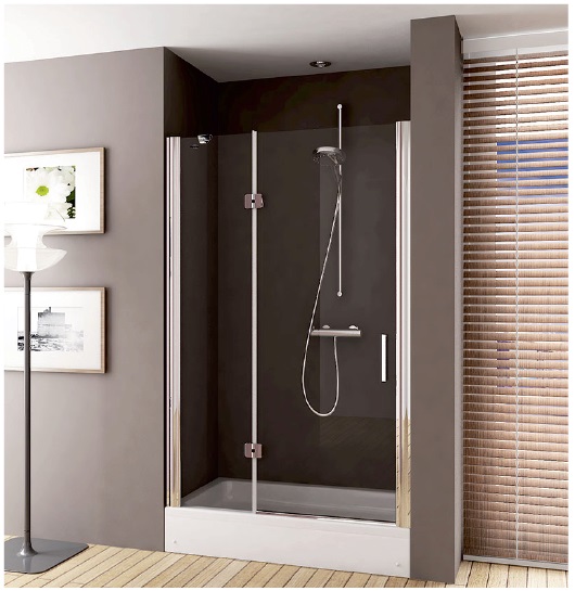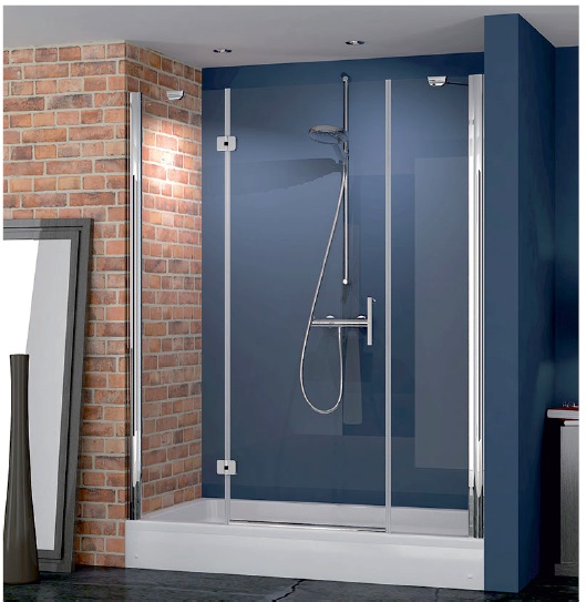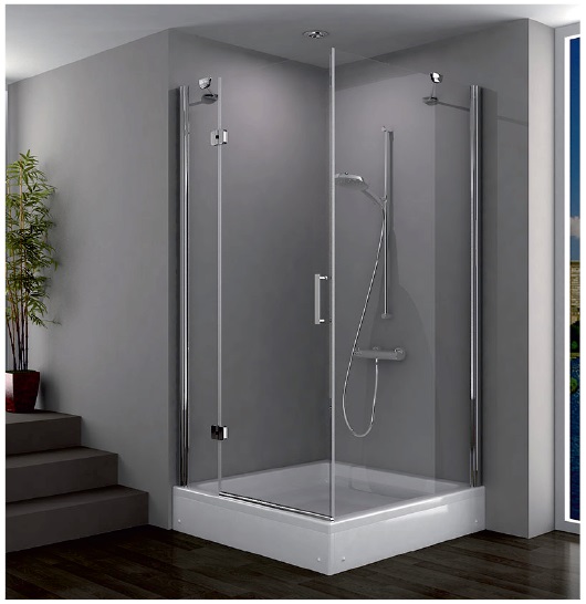 Dikdörtgen duş teknesi üstü, bir sabit bir açılır kapı.