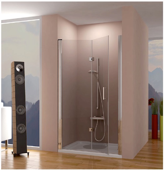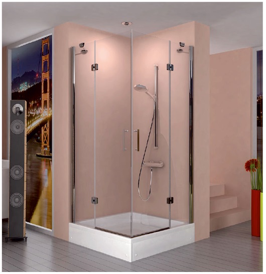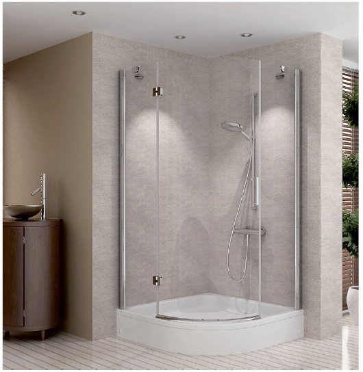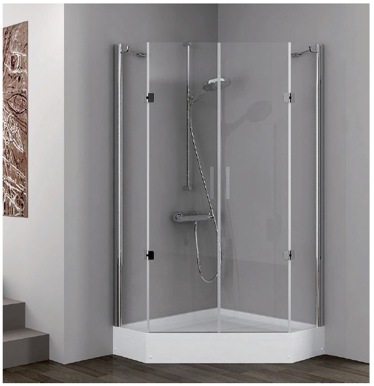 Beşgen duş teknesi üstü, iki sabit iki açılır kapı.