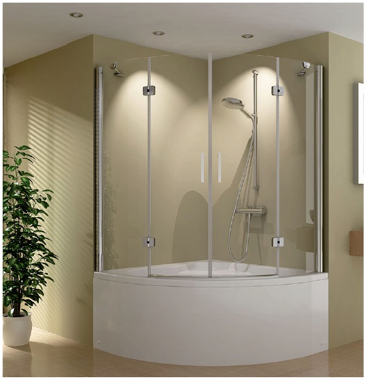 Oval küvet üstü, iki sabit iki açılır kapı.
