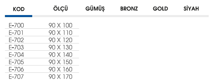 Seri: Elit / Yükseklik: 150 cm / Cam: 6mm