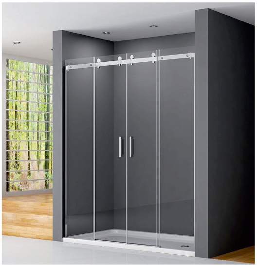 Dikdörtgen duş teknesi üstü, iki sabit iki kayar kapı.